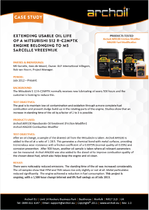 EXTENDING USABLE OIL LIFE OF A MITSUBISHI S12 R-C2MPTK ENGINE BELONGING TO MS SARCELLE VREESWIJK